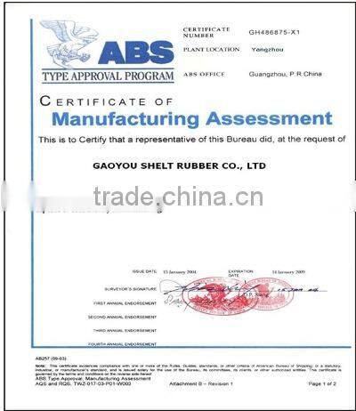 In 2008, we successfully developed self-floating single-frame and double-frame oil hoses, which have been certified by International authority organization. They have already been put into large volume production. Our company has complete supporting facilities and inspection devices, including 2 sets of 100L Banbury Mixers and 3 sets of 55L Banbury Mixers. 4 self-floating plants and 10 common rubber hose plants are used in our factory. The capacity of short hoses can be over 40 pieces and the output of floating hoses with inner diameter of more than 700mm can be 3-5 pieces per day. There are over 20 big scale docks and coastal docks using our rubber fender products. Besides, the Super arch fenders and plus long rubber fenders are in great demands. The total sales volume reached 60 million US dollars in 2010. Products worthy of 20 million US dollars have been exported to foreign countries. Our company has 5-year exportation history. The products are mainly exported to Belgium, the Netherlands, Germany, Japan and other countries.